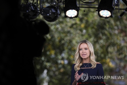 White House press secretary Kayleigh McEnany speaks during a TV interview with Fox outside the West Wing of the White House, in Washington, DC, USA, 02 October 2020. According to tweets by US President Trump and his wife Melania, both the President and the First Lady have tested positive for the SARS-CoV-2 coronavirus. EPA/Oliver Contreras / POOL