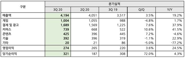 특히 3분기 페이코 거래규모는 전년 동기 대비 20% 증가했고, 오프라인 결제 규모는 전년 동기 대비 2배 이상 성장하며 전체 결제의 14% 비중까지 확대됐다.