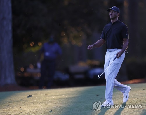 Tiger Woods of the US walks down the fairway on the ninth hole during the second round of the 2020 Masters Tournament at the Augusta National Golf Club in Augusta, Georgia, USA, 13 November 2020. After being delayed seven months by the coronavirus pandemic, the 2020 Masters Tournament is being held without patrons 12 November through 15 November. EPA/ERIK S. LESSER