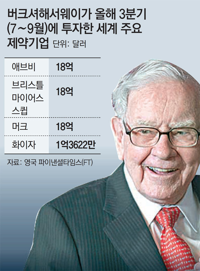 > 버크셔해서웨이, 기업 4곳 투자… 지금까지 제약업에 관심 크게 안둬 코로나이후 발전 가능성 주목한 듯… 금융기업 주식 비중은 크게 줄여 뛰어난 투자 및 기업 분석 능력으로 ‘투자의 귀재’ ‘오마하의 현인’으로 불리는 워런 버핏 버크셔해서웨이 회장(90)이 올해 3분기(7∼9월) 글로벌 제약기업 주식을 집중적으로 매수한 것으로 나타났다. 신종 코로나바이러스 감염증(코로나19)이 세계적으로 확산될 때 백신 연구 및 개발로 주목을 받아온 제약기업들에 대한 투자를 늘린 것. 버핏 회장이 이런 투자 기조를 얼마나 유지할지에 관심이 쏠린다. 16일(현지 시간) 파이낸셜타임스(FT)와 로이터통신 등에 따르면 버크셔해서웨이는 3분기 약 57억 달러(약 6조3082억 원)를 미국의 유명 제약기업 4곳에 투자했다. 애브비(2130만 주), 머크(2240만 주), 브리스틀마이어스스큅(3000만 주)에 18억여 달러씩 투자했다. 또 최근 코로나19 백신 3상 임상시험에서 90% 이상의 효과를 봤다고 발표해 화제를 모았던 화이자 주식도 같은 기간 1억3600만 달러어치(370만 주)를 매수했다. 다만 버크셔해서웨이의 제약기업들에 대한 지분은 0.1∼1.3%로 아직 미미한 편이다. 그동안 버크셔해서웨이는 제약기업에 대한 투자에 공격적이지 않은 편이었다. 투자 포럼 등에서 버핏 회장이 제약기업의 투자 유망성 혹은 성장 가능성을 특별히 강조한 것도 찾아보기 어렵다. 이에 따라 시장과 사회의 변화를 잘 읽는 버핏 회장이 제약기업에 집중 투자하기 시작한 건 한동안 투자업계에서 화제가 될 것으로 보인다. 버핏 회장이 코로나19 사태 장기화로 관련 백신에 대한 연구개발을 비롯한 제약기업의 역할에 큰 의미를 부여하기 시작한 것 아니냐는 분석도 나온다. 오현석 삼성증권 리서치센터장은 “최근 몇 년간 제약기업들의 주가가 크게 상승하지 못한 상황에서 코로나19 사태 등으로 제약산업의 발전 가능성에 대한 관심이 커지고 있다”며 “백신 개발 등을 비롯해 향후 메이저 제약기업들의 주가 상승 요인이 많다는 점을 고려한 전략으로 보인다”고 말했다. 버크셔해서웨이는 제약기업 주식을 대거 매수한 3분기에 금융 관련 주식은 대량 매도했다. 특히 이 기간에 웰스파고, JP모건체이스, PNC, M&T 같은 유명 금융기업의 주식 비중을 크게 줄인 것으로 나타났다. 13억 달러(약 1조4378억 원) 규모로 보유하고 있던 유통기업 코스트코 주식도 모두 매각했다. 오 센터장은 “제약기업과 달리 금융기업들의 경우 최근 수년간 주가가 많이 올랐다. 향후 상승 가능성이 둔화될 것을 감안해 비중을 줄인 것으로 풀이된다”고 말했다. 버크셔해서웨이는 올해 상반기(1∼6월)에는 코로나19로 타격을 크게 입은 항공 관련 주식을 대거 매각하기도 했다. 버핏 회장은 코로나19 사태의 장기화가 본격 점쳐지기 시작한 올해 5월 진행된 연례 주주총회에서 “코로나19로 세상이 크게 바뀌고 있다”고 강조하며 심각한 경영난을 겪고 있는 미국 주요 항공사 지분을 처분했다고 밝혔다. 이세형 기자 turtle@donga.com ▶ 네이버에서 [동아일보] 채널 구독하기▶ 증발에 운다…그렇게 부모가 되지 못했다▶ “말이 안 통해”… 극과 극이 만난다면?ⓒ 동아일보 & donga.com, 무단 전재 및 재배포 금지
