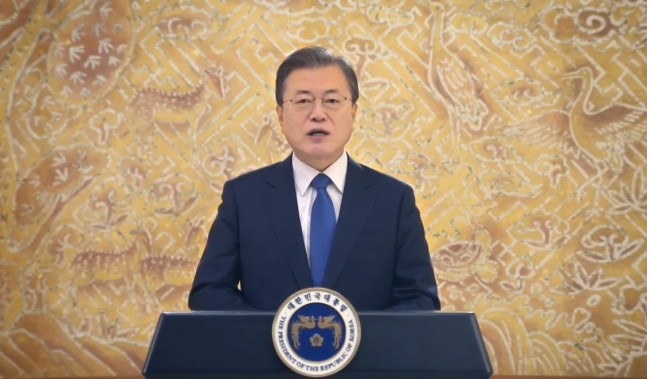 이어 "디지털 혁신과 결합한 '그린 뉴딜'을 통해 녹색산업을 발전시킬 것이다. 기후위기를 '포용적이며 지속가능한 성장'의 기회로 삼아 새로운 일자리를 만들고, '그린 뉴딜'의 경험과 성과를 모든 나라와 공유하겠다"고 했다.