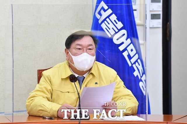 최근 민주당 회의에서 이낙연 대표가 말수를 줄이고 상대적으로 김태년 원내대표 발언 비중이 늘었다는 이야기가 취재진 사이에서 나온다. 사진은 김 원내대표가 8일 국회에서 열린 최고위원회의에 참석해 모두발언을 하는 모습. /남윤호 기자◆민주당 최고위서 말 많아진 김태년 원내대표-요즘 당 지지율이 20%대로 떨어졌는데 민주당 최고위원회 회의 분위기는 어떤가요?