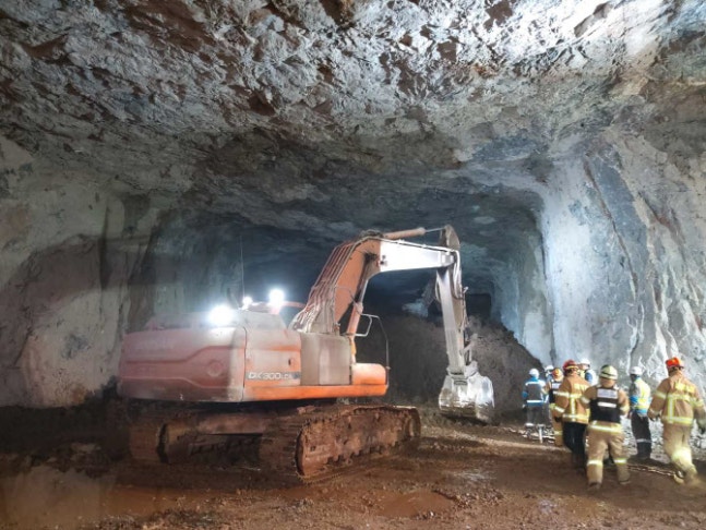 | | 소방당국이 지난달 16일 오후 2시 11분께 강원 삼척시 근덕면 교곡리 석회선 광산 붕괴 현장에서 채굴 공사 작업을 하다 토사에 매몰된 굴삭기 운전자를 구조하기 위해 작업하고 있다. (사진=강원도소방본부 제공) |