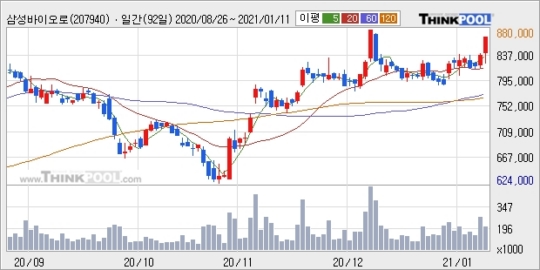 오전부터 삼성그룹의 바이오 사업 지주사인 삼성바이오로직스(207940)가 강세를 보이고 있다.